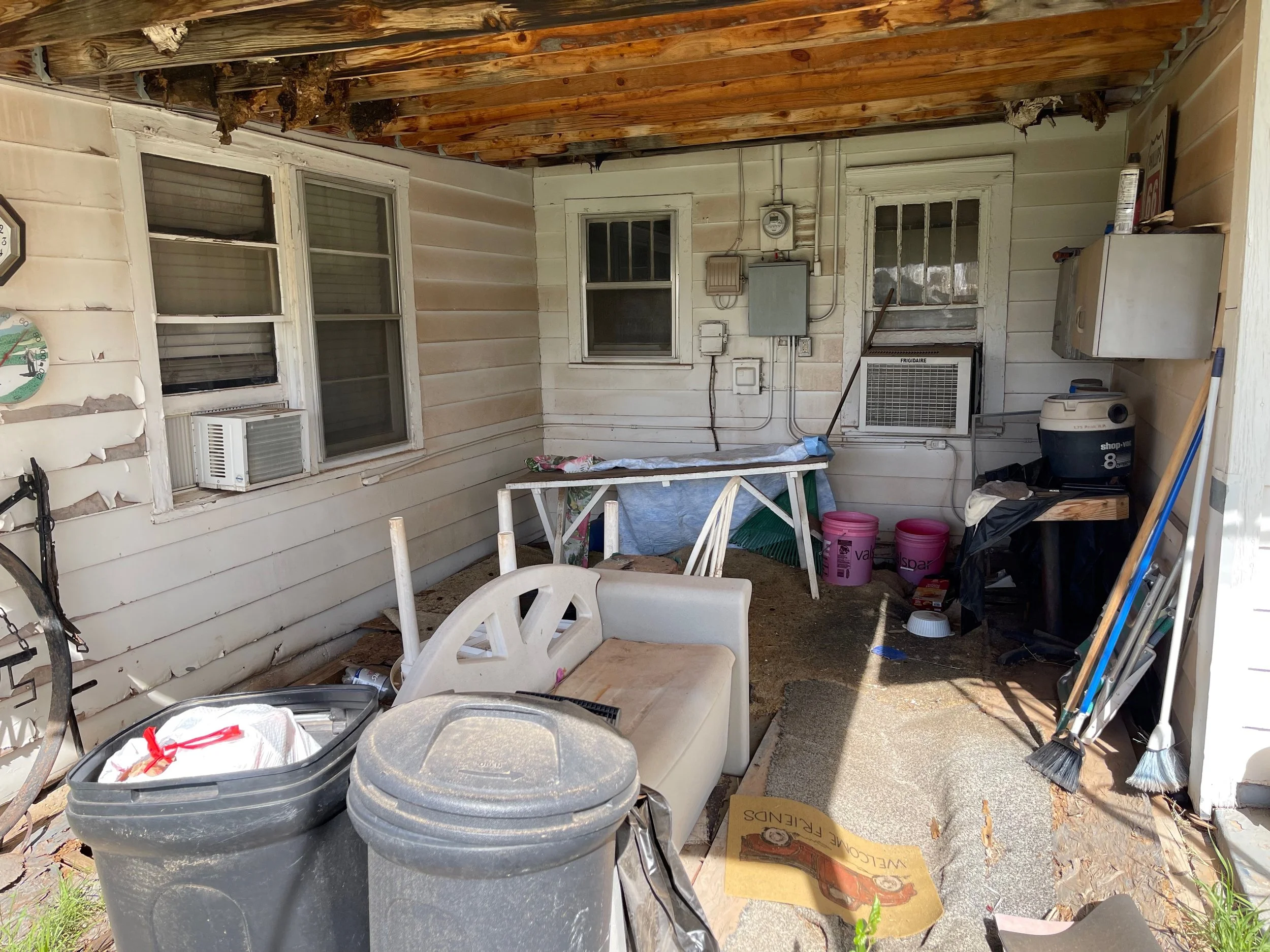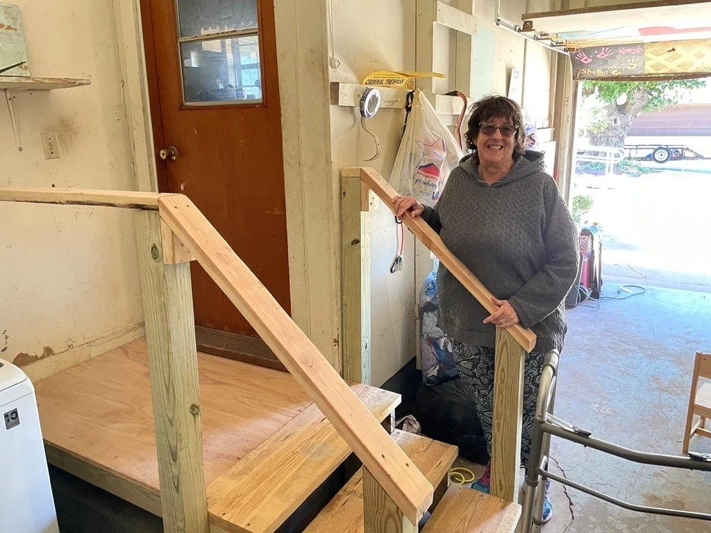 One homeowner's ramp and carport were in a state of total disrepair and unsafe to the point of collapsing. We were able to haul off the debris, fix the ramp to the front step so that it is solid and we are in the process of redoing the carport so it is stable and secure. This homeowner is active in helping others and uses the carport to store donations and get those donations to people who need it. Neighbors helping neighbors.